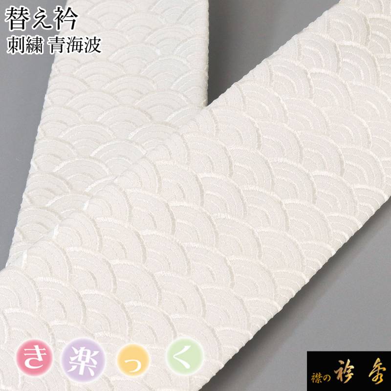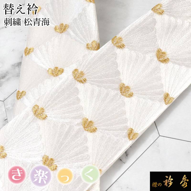 衿秀 公式 き楽っく 替え衿 替衿 かええり 刺繍 松葉 青海波 白 洗える 日本製 和装小物 襟の衿秀 すなお きものすなお
