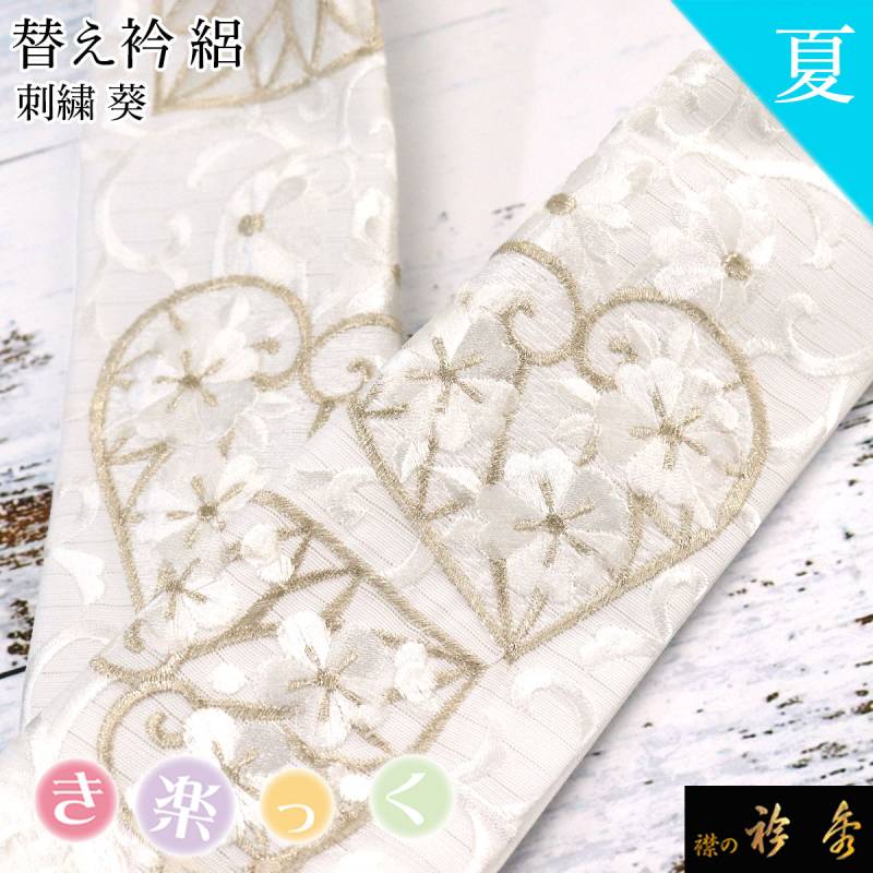 衿秀 公式 き楽っく 替え衿 替衿 かええり 夏 絽 刺繍 葵 白銀 フォーマル きらっく 洗える 日本製 和装小物 えりひで 襟の衿秀 すなお きものすなお
