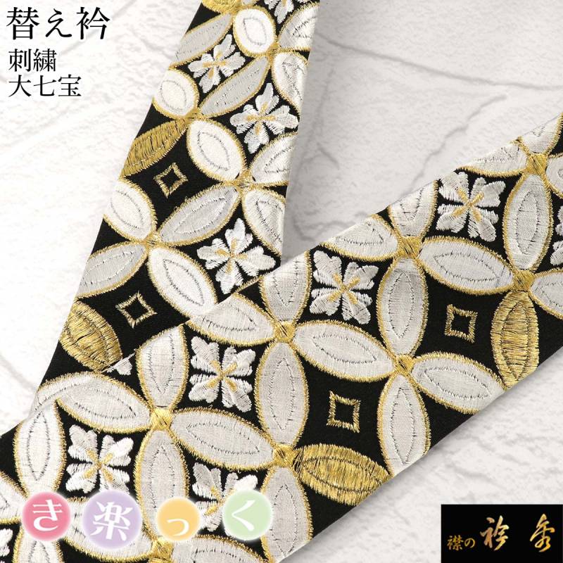 衿秀 公式 き楽っく 替え衿 替衿 かええり 刺繍 大七宝 黒 留袖 訪問着 振袖 きらっく 洗える 日本製 和装小物 えりひで 襟の衿秀 すなお きものすなお