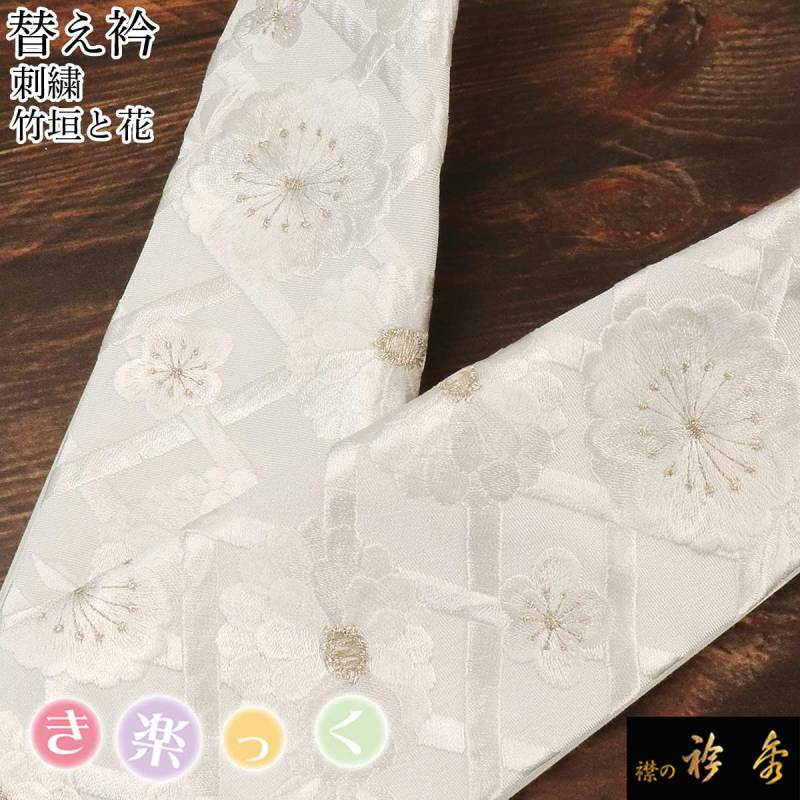 衿秀 公式 き楽っく 替え衿 替衿 かええり 刺繍 竹垣 花 菊 梅 白銀 フォーマル 半衿 きらっく 洗える 日本製 和装小物 えりひで 襟の衿秀 すなお きものすなお