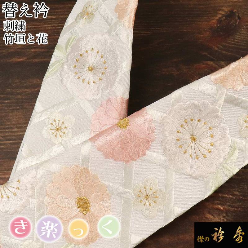 衿秀 公式 き楽っく 替え衿 替衿 かええり 刺繍 竹垣 花 菊 梅 ピンク フォーマル 洗える 日本製 和装小物 襟の衿秀 すなお きものすなお