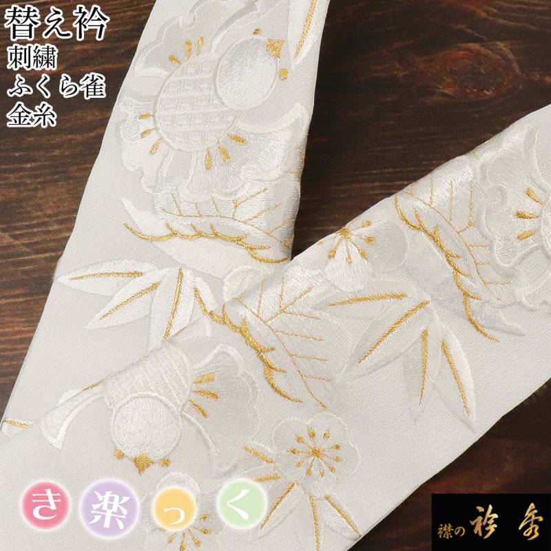 衿秀 公式 き楽っく 替え衿 替衿 かええり 刺繍 ふくら雀 白金 フォーマル 半衿 きらっく 洗える 日本製 和装小物 えりひで 襟の衿秀 すなお きものすなお