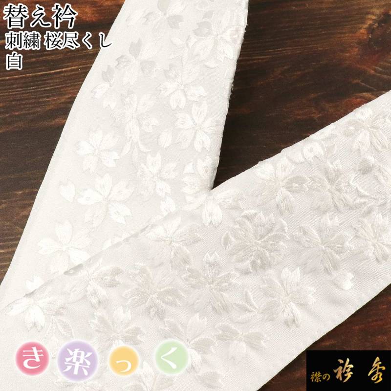 衿秀 公式 き楽っく 替え衿 替衿 かええり 刺繍 桜尽くし 白 半衿 はんえり きらっく 洗える 日本製 えりひで 襟の衿秀 すなお きものすなお