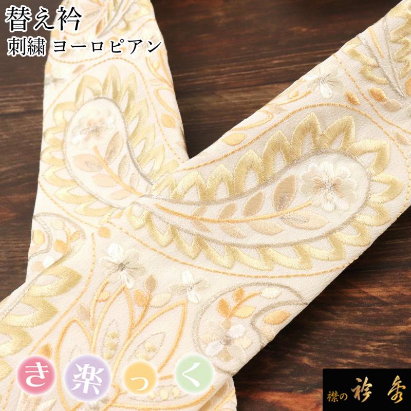 衿秀 公式 き楽っく 替え衿 替衿 かええり 刺繍 ヨーロピアン 薄黄色 おしゃれ 半衿 はんえり きらっく 洗える 日本製 えりひで 襟の衿秀 きものすなお