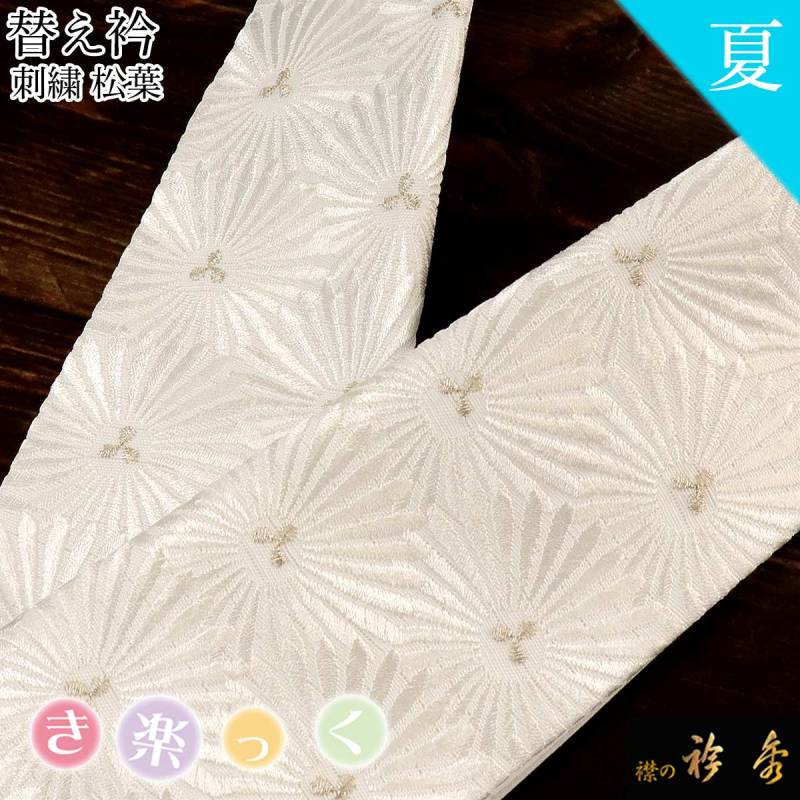 衿秀 公式 き楽っく 替え衿 替衿 かええり 夏 絽 刺繍 松葉 白銀 フォーマル きらっく 洗える 日本製 和装小物 えりひで 襟の衿秀 すなお きものすなお