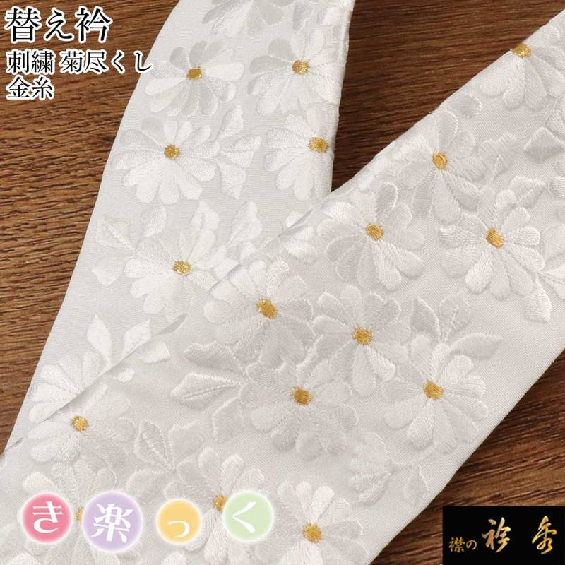 衿秀 公式 き楽っく 替え衿 替衿 かええり 刺繍 菊尽くし 金 フォーマル 半衿 はんえり きらっく 洗える 日本製 えりひで 襟の衿秀 すなお きものすなお