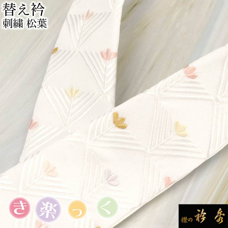 衿秀 公式 き楽っく 替え衿 替衿 かええり 刺繍 松葉 パステルカラー 半衿 はんえり きらっく 洗える 日本製 えりひで 襟の衿秀 すなお きものすなお