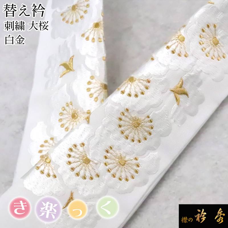 衿秀 公式 き楽っく 替え衿 替衿 かええり 刺繍 大桜 白金 半衿 はんえり きらっく ファスナー 洗える 日本製 えりひで 襟の衿秀 すなお きものすなお