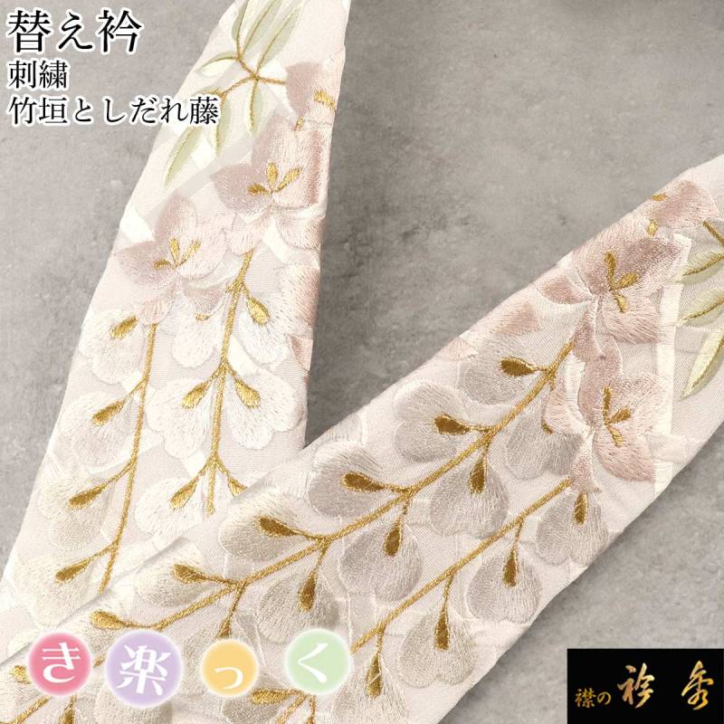 衿秀 公式 き楽っく 替え衿 替衿 かええり 刺繍 しだれ藤 ピンク 半衿 きらっく 洗える 日本製 和装小物 えりひで 襟の衿秀 すなお きものすなお