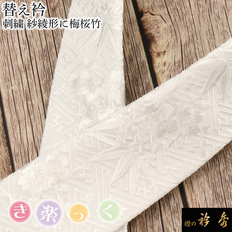 衿秀 公式 き楽っく 替え衿 替衿 かええり 刺繍 紗綾形 さやがた 桜 竹 梅 白 フォーマル 洗える 日本製 和装小物 襟の衿秀 すなお きものすなお