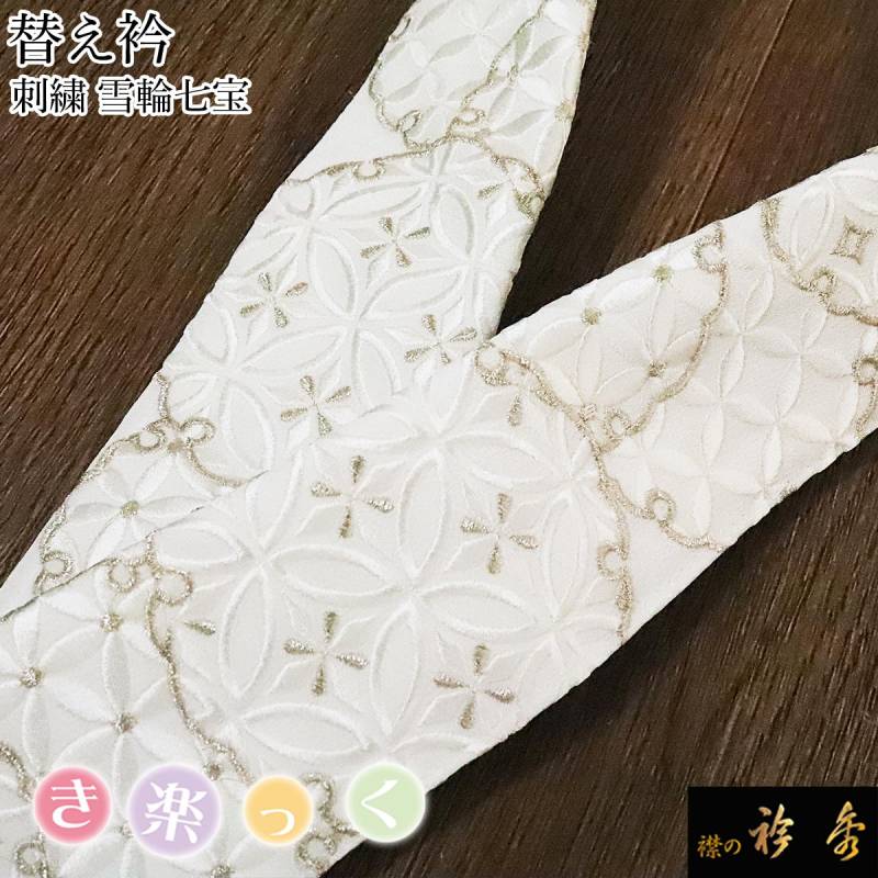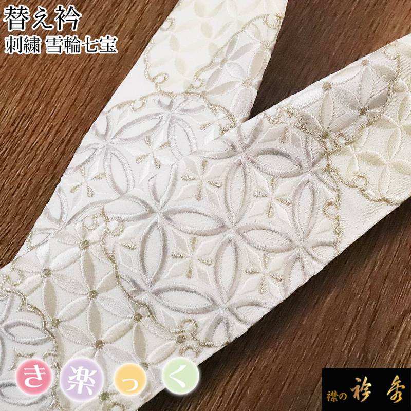 衿秀 公式 き楽っく 替え衿 替衿 かええり 刺繍 雪輪 七宝 洗える 日本製 和装小物 襟の衿秀 すなお きものすなお