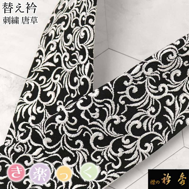 衿秀 公式 き楽っく 替え衿 替衿 かええり 刺繍 唐草 黒地 半衿 はんえり きらっく 洗える 日本製 えりひで 襟の衿秀 すなお きものすなお