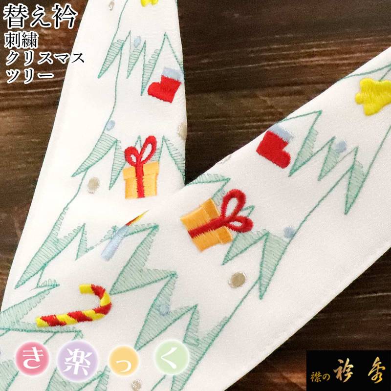 衿秀 公式 き楽っく 替え衿 替衿 かええり 刺繍 白地 クリスマス ツリー Christmas 半衿 きらっく 洗える 日本製 和装小物 えりひで 襟の衿秀 きものすなお