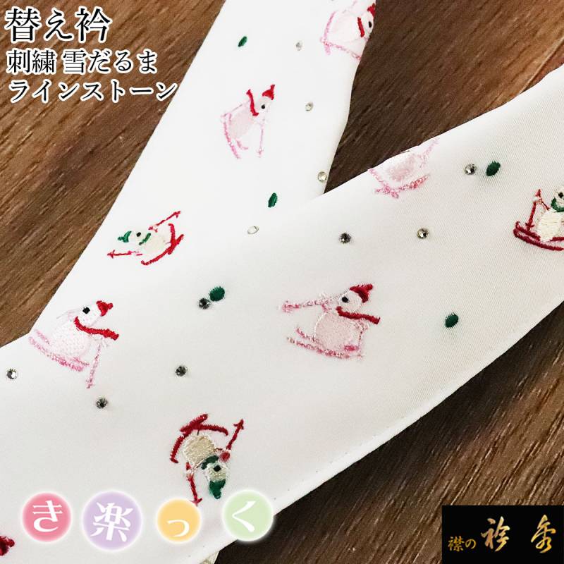 衿秀 公式 き楽っく 替え衿 替衿 かええり ラインストーン 雪だるま スキー 刺繍 半衿 はんえり きらっく 洗える 日本製 和装小物 えりひで すなお きものすなお