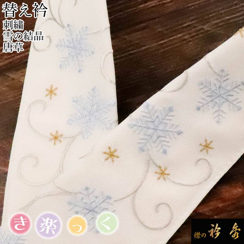 衿秀 公式 き楽っく 替え衿 替衿 かええり 刺繍 雪の結晶 唐草 金 ゴールド 半衿 きらっく 洗える 日本製 和装小物 えりひで 襟の衿秀 きものすなお