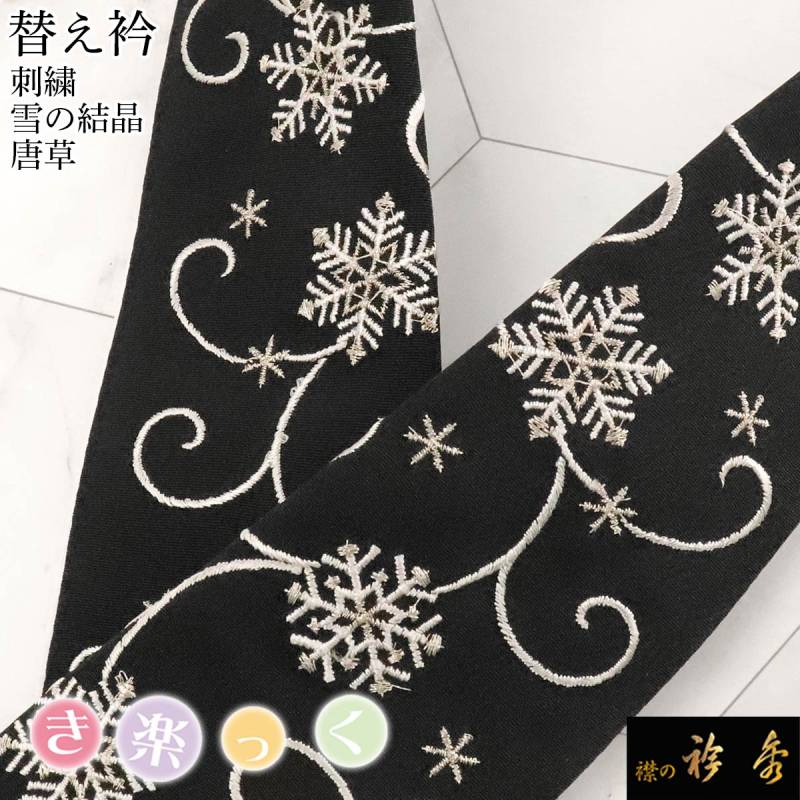 衿秀 公式 き楽っく 替え衿 替衿 かええり 刺繍 雪の結晶 唐草 黒地 白銀 半衿 きらっく 洗える 日本製 和装小物 えりひで 襟の衿秀 きものすなお