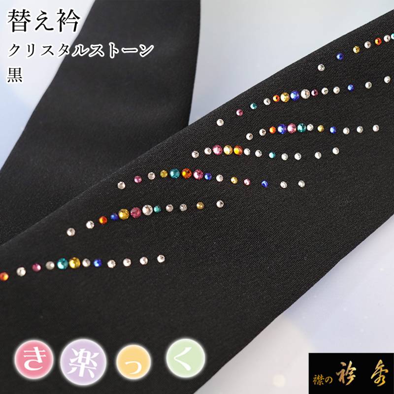 衿秀 公式 き楽っく 替え衿 替衿 かええり クリスタルストーン 黒 きらっく 日本製 和装小物 えりひで 襟の衿秀 きものすなお