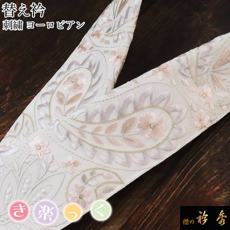 衿秀 公式 き楽っく 替え衿 替衿 かええり 刺繍 ヨーロピアン 銀糸 ピンク 半衿 はんえり きらっく 洗える 日本製 えりひで 襟の衿秀 すなお きものすなお