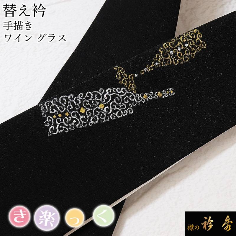 衿秀 公式 き楽っく 替え衿 替衿 かええり ワイン ボトル グラス 手描き 黒 きらっく カラー 洗える 日本製 和装小物 えりひで 襟の衿秀 すなお きものすなお