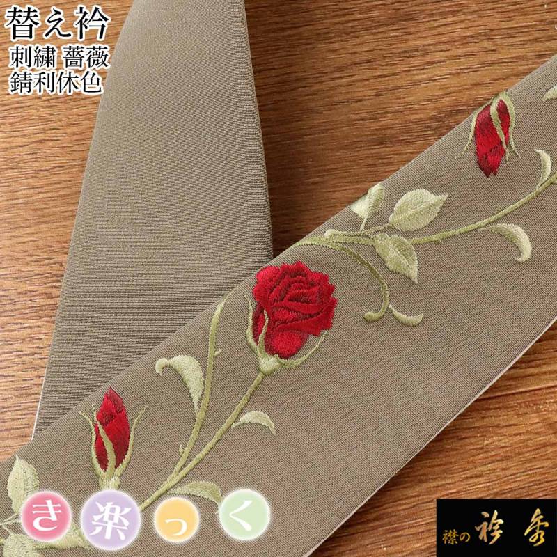 衿秀 公式 き楽っく 替え衿 替衿 かええり 刺繍 薔薇 バラ ローズ 錆利休 ブラウン 半衿 きらっく 洗える 日本製 和装小物 えりひで すなお きものすなお