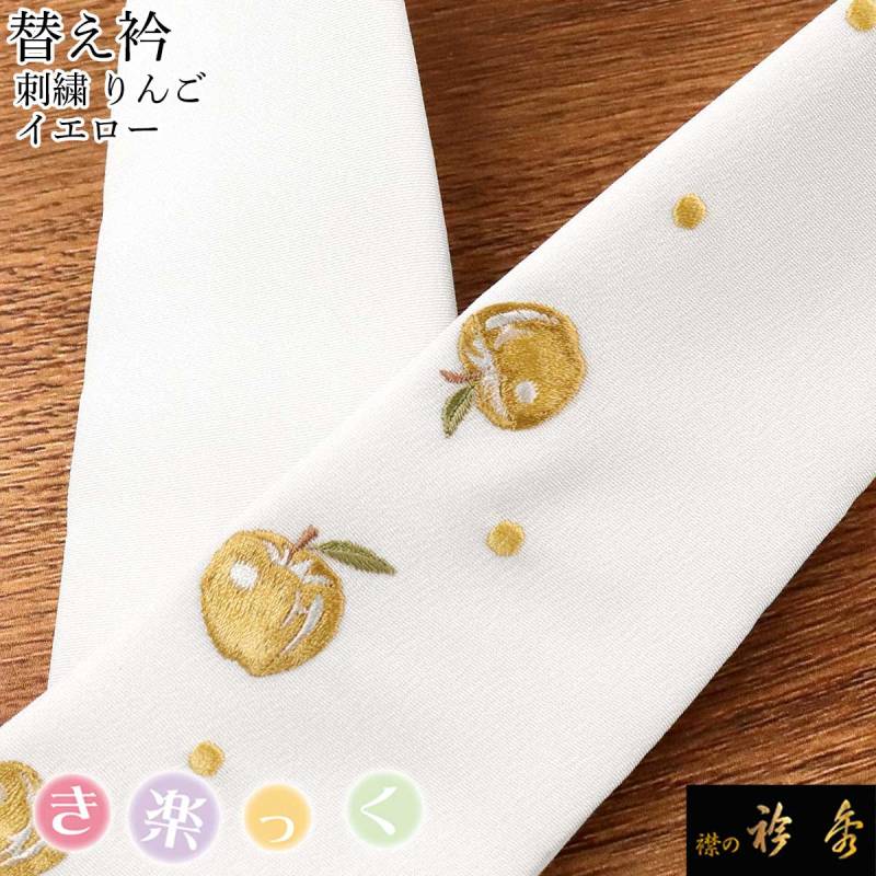 衿秀 公式 き楽っく 替え衿 替衿 かええり 刺繍 リンゴ りんご 林檎 白地 イエロー 半衿 きらっく 洗える 日本製 和装小物 えりひで すなお きものすなお