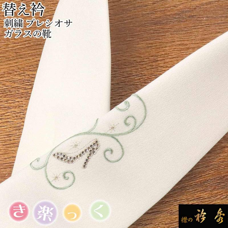衿秀 公式 き楽っく 替え衿 替衿 かええり 刺繍 クリスタルストーン グリーン シンデレラ 洗える 日本製 和装小物 えりひで 襟の衿秀 すなお きものすなお