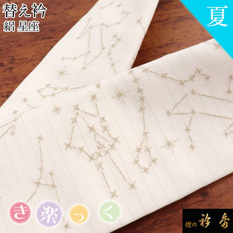 衿秀 公式 き楽っく 替え衿 替衿 かええり 夏 絽 刺繍 白銀 星座 星 カジュアル 白 洗える 日本製 和装小物 えりひで 襟の衿秀 すなお きものすなお