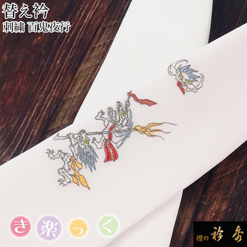 衿秀 公式 き楽っく 替え衿 替衿 かええり 刺繍 百鬼夜行 妖怪 半衿 はんえり きらっく 洗える 日本製 和装小物 えりひで きものすなお