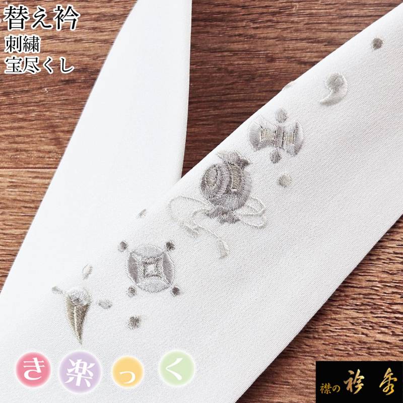 衿秀 公式 き楽っく 替え衿 替衿 かええり 刺繍 宝尽くし 白 グレー 半衿 はんえり きらっく 洗える 日本製 和装小物 えりひで すなお きものすなお