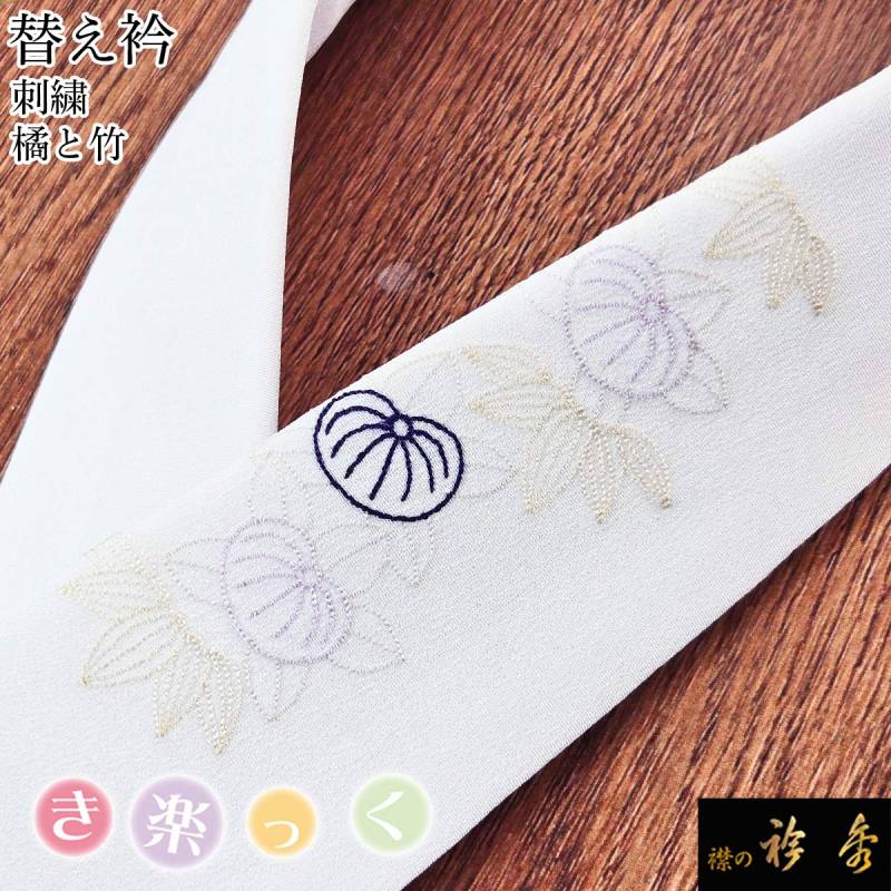衿秀 公式 き楽っく 替え衿 替衿 かええり 刺繍 ワンポイント 橘 たちばな 竹 はんえり きらっく 洗える 日本製 和装小物 えりひで すなお きものすなお