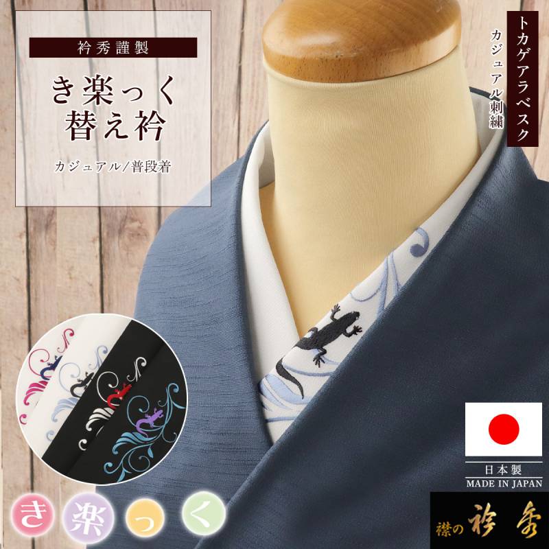 衿秀 公式 き楽っく 替え衿 刺繍 トカゲ 唐草 アラベスク 蜥蜴 とかげ 替衿 かええり ワンポイント 黒 白 日本製 和装小物 和小物 えりひで 襟の衿秀 tb