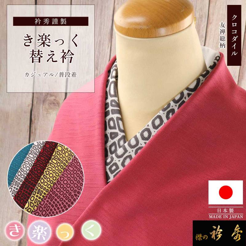 衿秀 公式 き楽っく 替え衿 日本製 クロコダイル 鰐 絹 シルク 友禅 サッカー地 替衿 かええり 和装小物 和小物 えりひで 襟の衿秀 tb