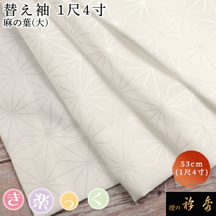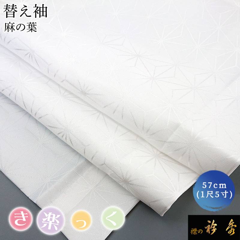 衿秀 公式 き楽っく 替え袖 きらっく 替袖 かえそで 麻の葉 地紋 1尺5寸 白 上品 洗える 簡単着付け すなお きものすなお tb