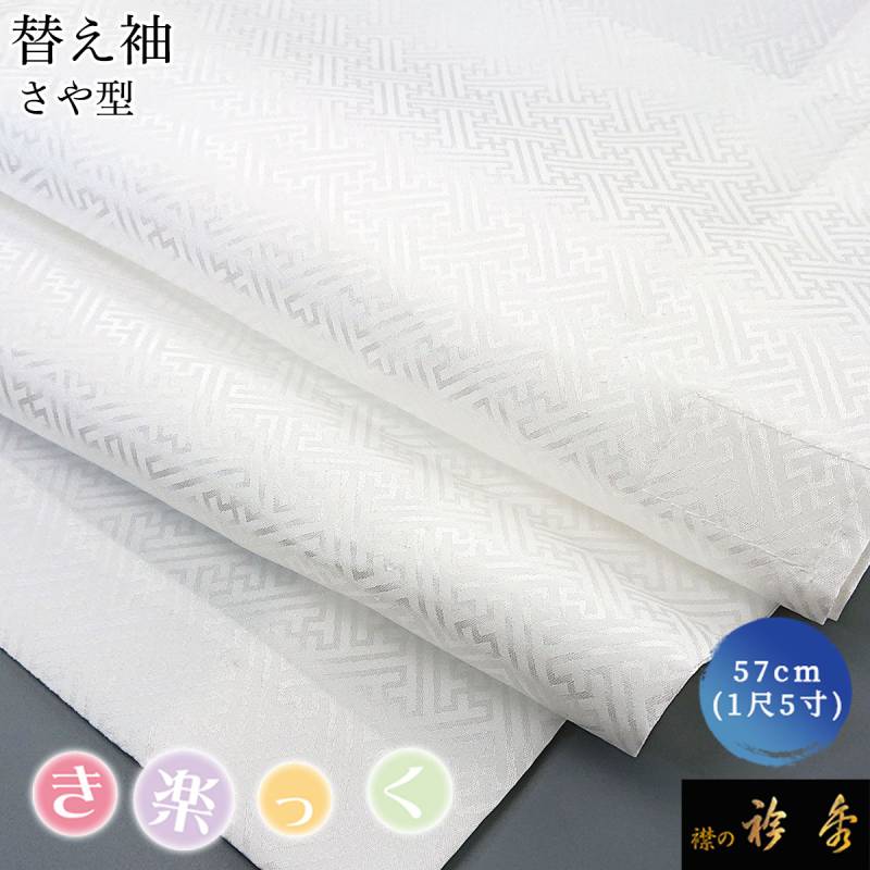 衿秀 公式 き楽っく 替え袖 きらっく 替袖 かえそで 紗綾型 さや型 地紋 1尺5寸 白 上品 洗える 簡単着付け すなお きものすなお tb