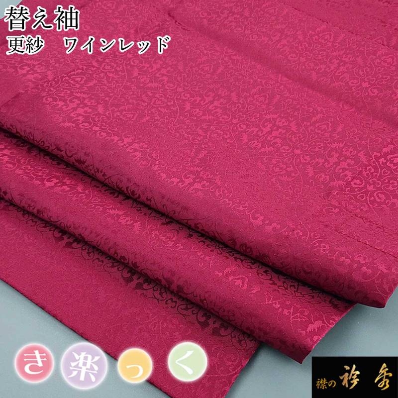 衿秀 公式 き楽っく 替え袖 きらっく 替袖 かえそで 更紗 地紋 ワインレッド 洗える簡単着付け 日本製 襟の衿秀 すなお きものすなお