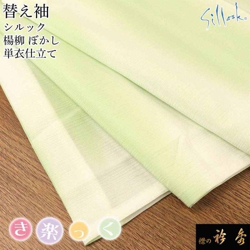 衿秀 公式 き楽っく 替え袖 きらっく 替袖 かえそで シルック 楊柳 単衣 グリーン ぼかし 洗える 日本製 和装小物 えりひで 襟の衿秀 すなお きものすなお