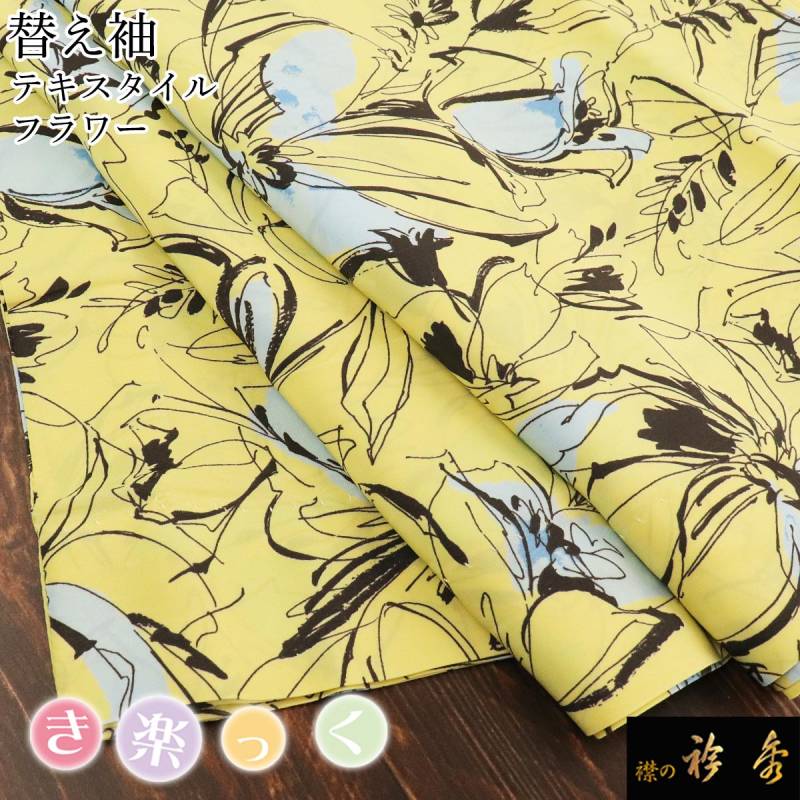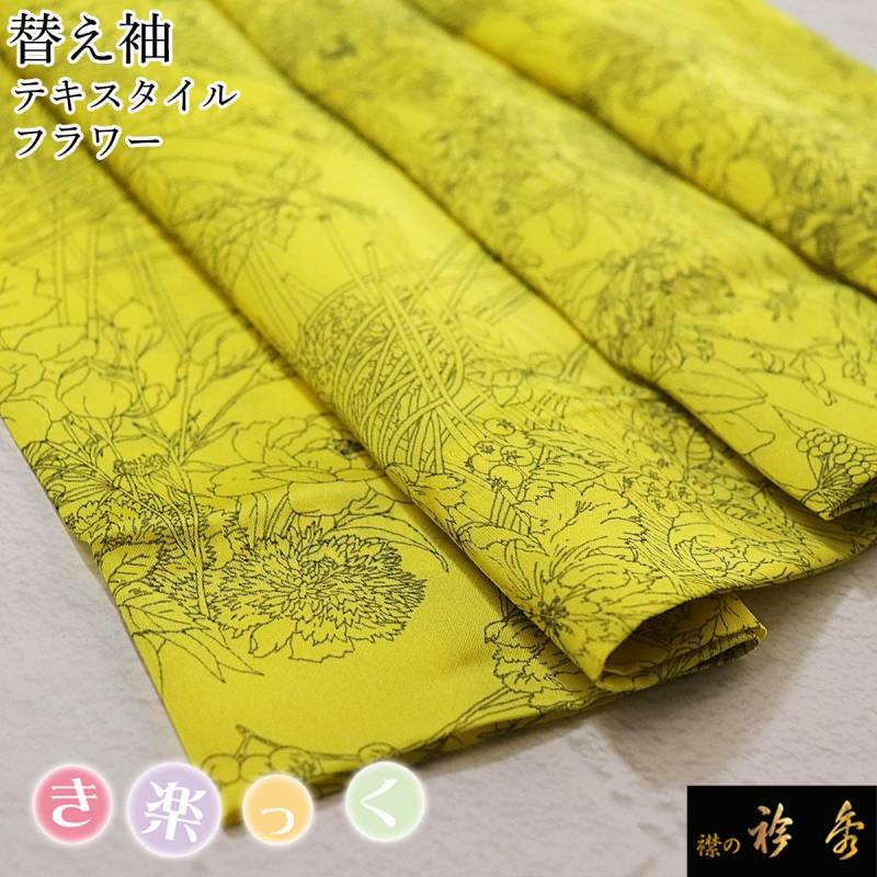 衿秀 公式 き楽っく 替え袖 きらっく 替袖 かえそで テキスタイル フラワー イエロー 黄色 洗える 簡単着付け 日本製 襟の衿秀 すなお きものすなお