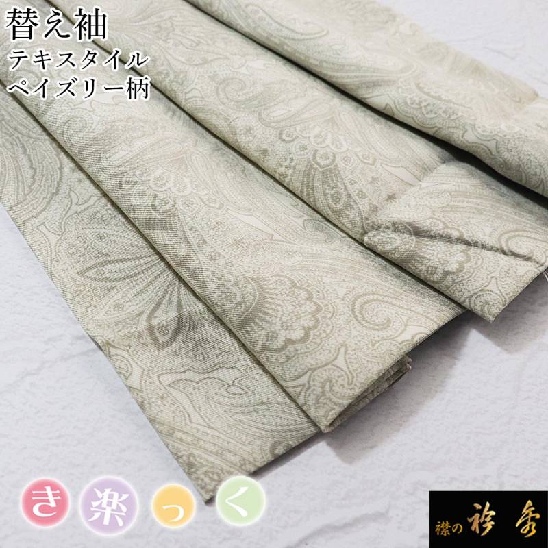 衿秀 公式 き楽っく 替え袖 きらっく 替袖 かえそで テキスタイル ペイズリー柄 グレー ベージュ 洗える 簡単着付け 日本製 襟の衿秀 すなお きものすなお