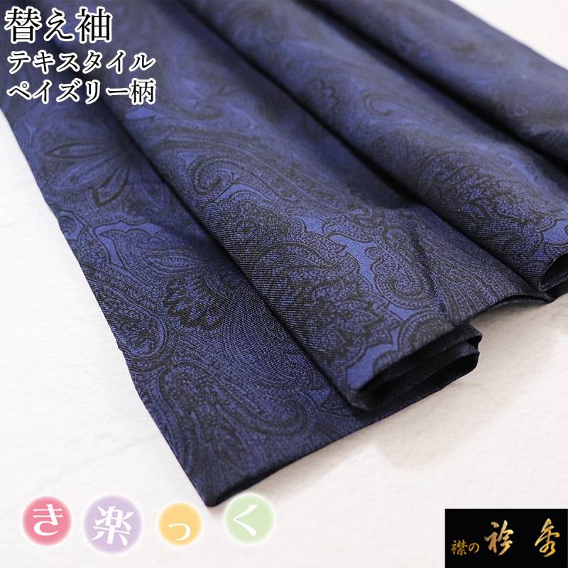 衿秀 公式 き楽っく 替え袖 きらっく 替袖 かえそで テキスタイル ペイズリー柄 紺 ネイビー 洗える 簡単着付け 日本製 襟の衿秀 すなお きものすなお