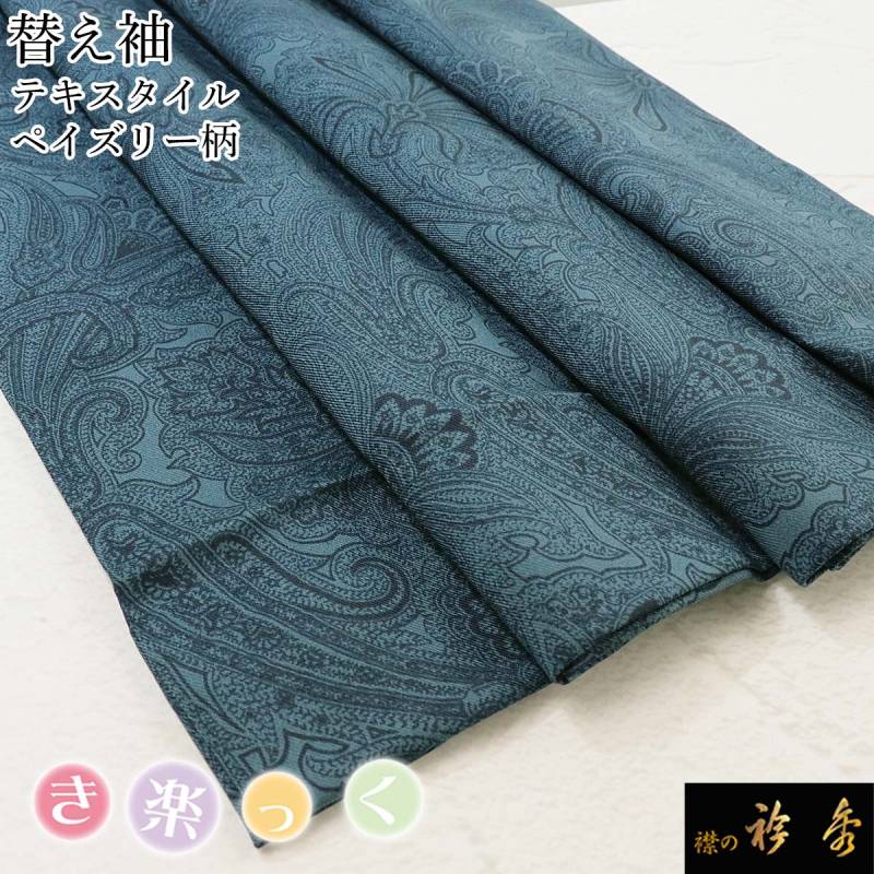 衿秀 公式 き楽っく 替え袖 きらっく 替袖 かえそで テキスタイル ペイズリー柄 錆納戸 さびなんど 洗える 簡単着付け 日本製 襟の衿秀 すなお きものすなお