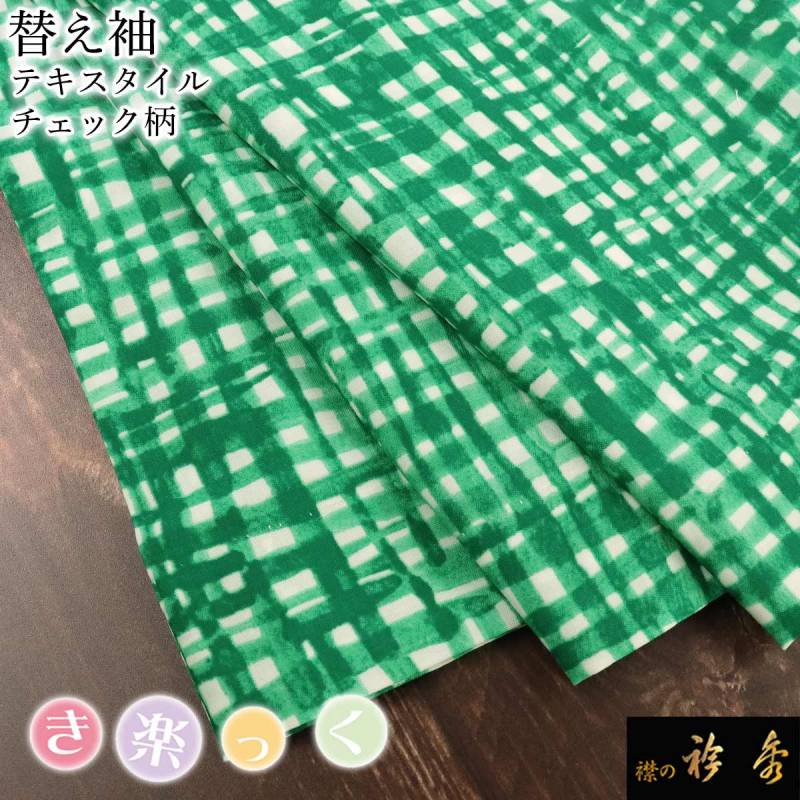 衿秀 公式 き楽っく 替え袖 きらっく 替袖 かえそで テキスタイル チェック柄 グリーン カジュアル 簡単着付け 日本製 襟の衿秀 すなお きものすなお