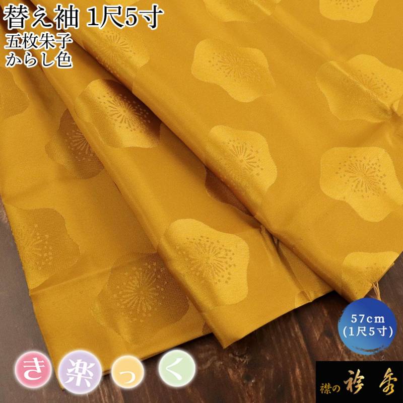 衿秀 公式 き楽っく 替え袖 きらっく 替袖 かえそで 五枚朱子 地紋 梅 辛子 からし 1尺5寸 洗える日本製 襟の衿秀 すなお きものすなお