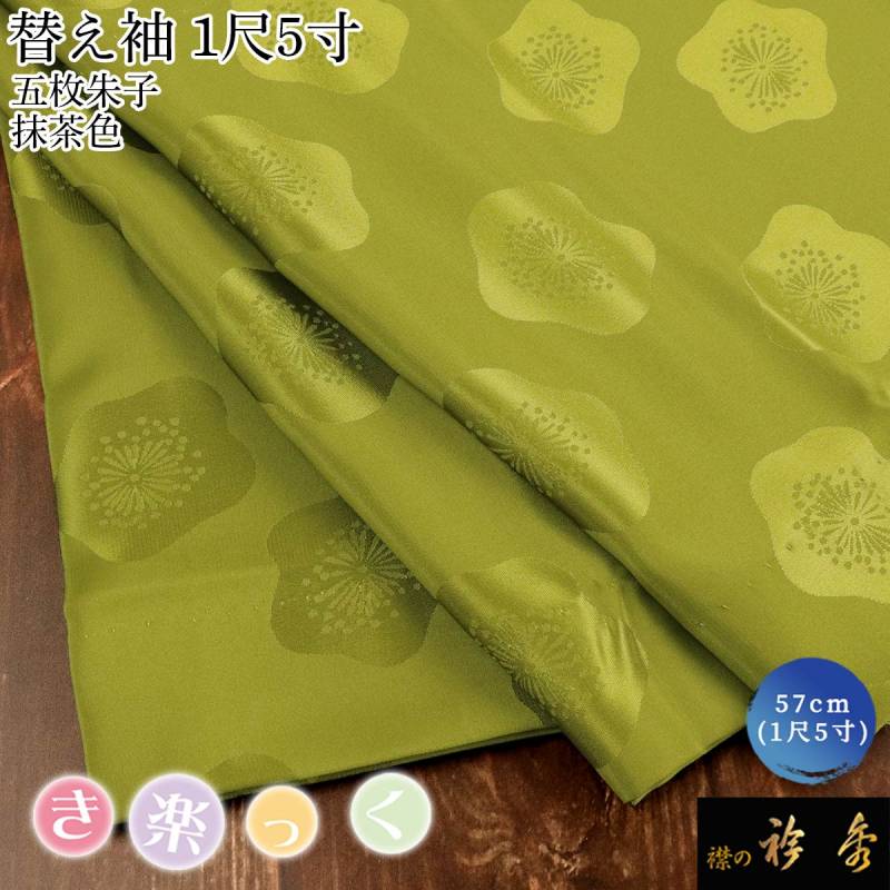 衿秀 公式 き楽っく 替え袖 きらっく 替袖 かえそで 五枚朱子 地紋 梅 抹茶 グリーン 1尺5寸 洗える日本製 襟の衿秀 すなお きものすなお