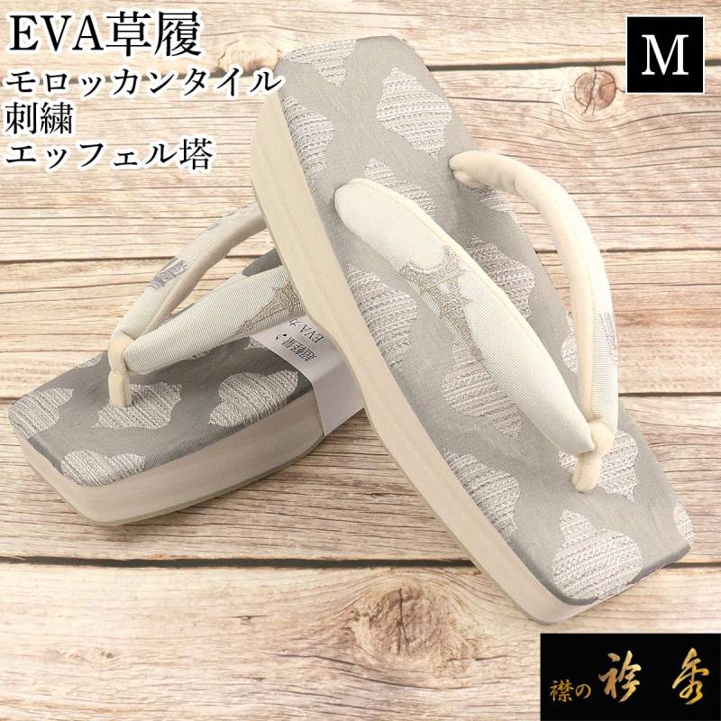 衿秀 公式 草履 ぞうり EVA はく楽草履 モロッカンタイル スクエア 刺繍 エッフェル塔 グレー M 履きやすい 軽量 痛くない カジュアル 日本製 襟の衿秀 えりひで 和装小物