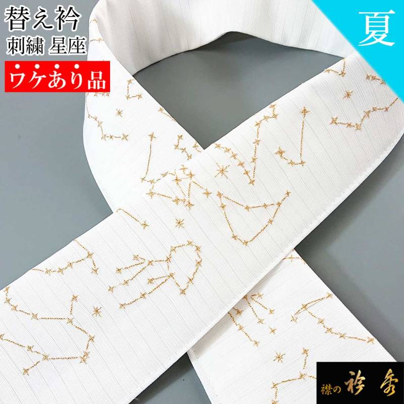 衿秀 公式《ワケアリ》き楽っく 替え衿 替衿 かええり 夏 絽 刺繍 星座 星 カジュアル 白 洗える 日本製 和装小物 えりひで 襟の衿秀 すなお きものすなお