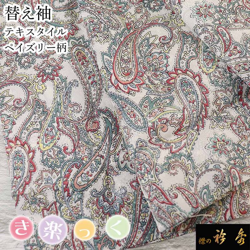 衿秀 公式 き楽っく 替え袖 きらっく 替袖 かえそで テキスタイル ペイズリー柄 白 洗える 簡単着付け 日本製 襟の衿秀 すなお きものすなお