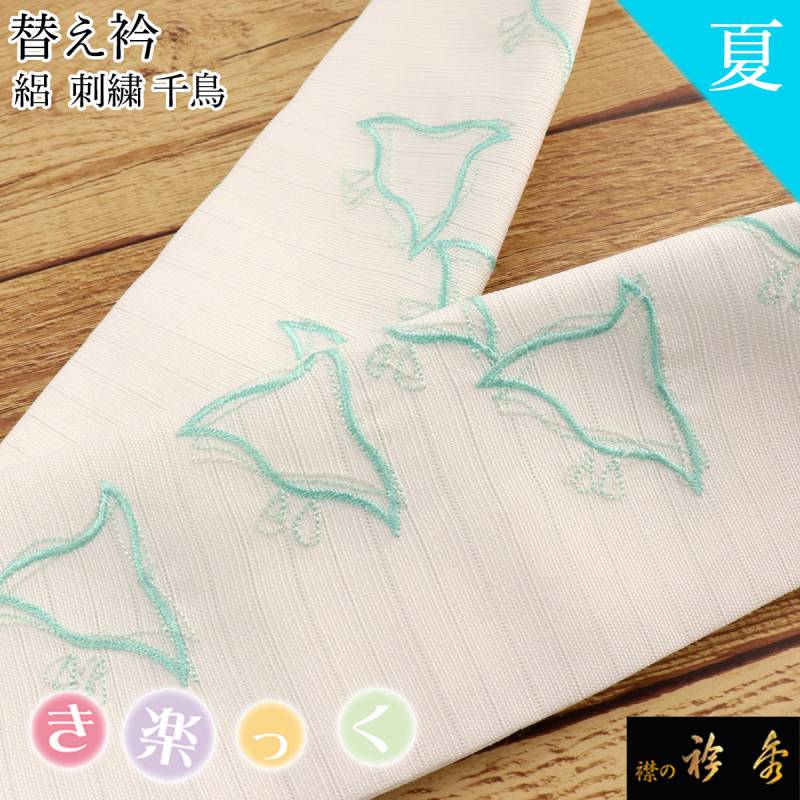 衿秀 公式 き楽っく 替え衿 替衿 かええり 夏 絽 刺繍 千鳥 ブルーグリーン きらっく 洗える 日本製 和装小物 えりひで 襟の衿秀 すなお きものすなお
