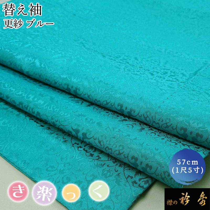 衿秀 公式 き楽っく 替え袖 きらっく 替袖 かえそで 更紗 1尺5寸 地紋 ブルー 洗える簡単着付け 日本製 襟の衿秀 すなお きものすなお