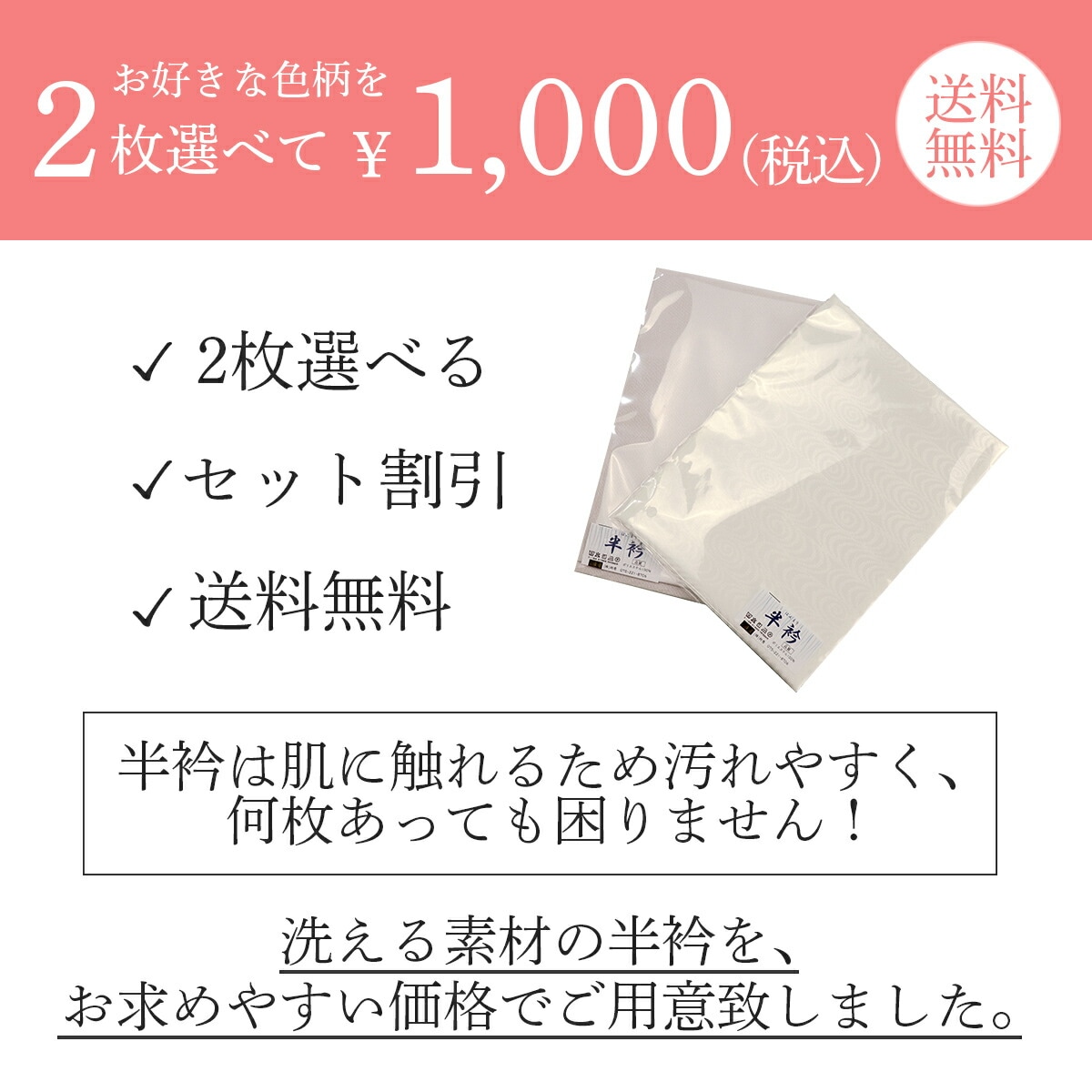 お好きな色柄が2枚選べてセット割引、