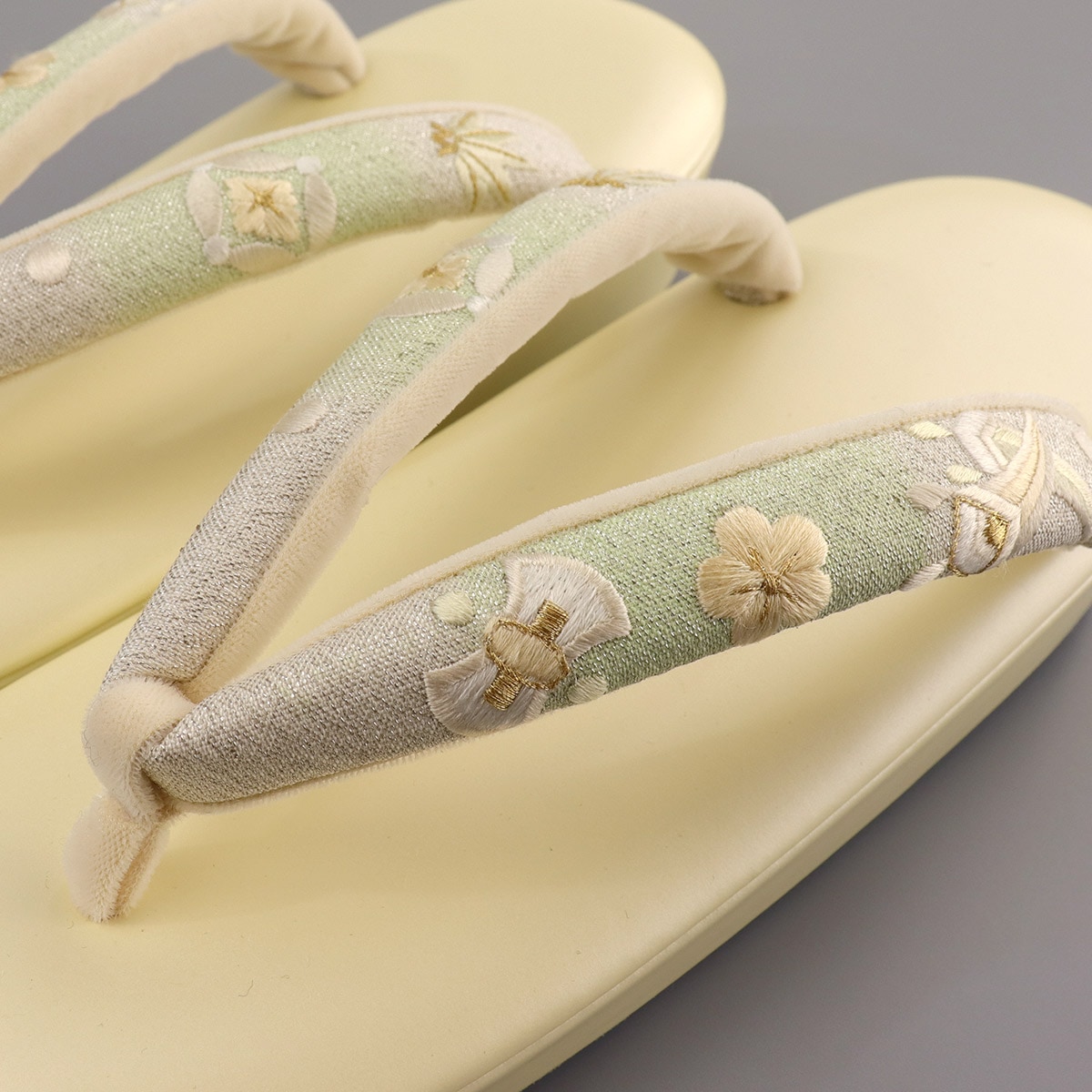 衿秀 公式 草履 ぞうり 刺繍 晴雨 晴雨兼用 ティータイム 紅茶 マカロン パールベージュ L シャレ 普段着 履きやすい 防水 日本製 襟の衿秀 sp